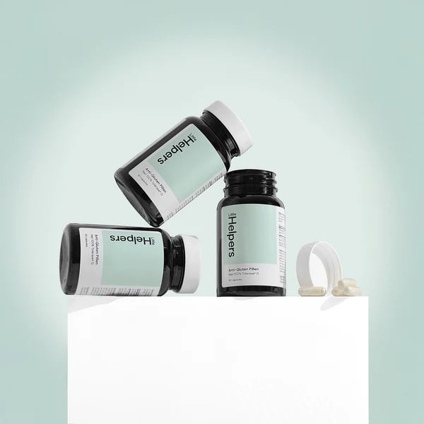 Unsere Anti-Gluten-Pillen enthalten Enzyme, die Gluten so weit abbauen, dass Ihr Körper nicht mehr darauf reagiert.