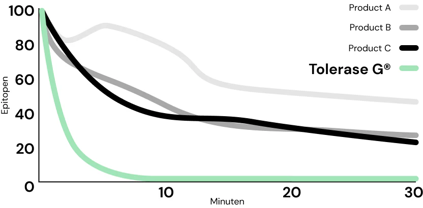 Mehrere peer-reviewte Studien zeigen eine Reduktion von 86 % der immunogenen Glutenpeptide innerhalb von ca. 10 Minuten.